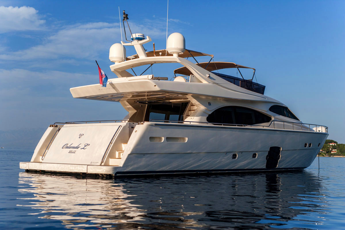 ORLANDO L accommodates eight guests in four comfortable and charming staterooms. She boasts a spacious interior which is contemporary in style, as well as a large protected aft deck, a full beam Owner’s cabin and a comfortable dining area. She boasts a selection of water toys and ample space in which guests can sunbathe and relax. ORLANDO L is perfect for cruising the Adriatic and taking in the stunning scenery of the picturesque area either with friends or as a family.